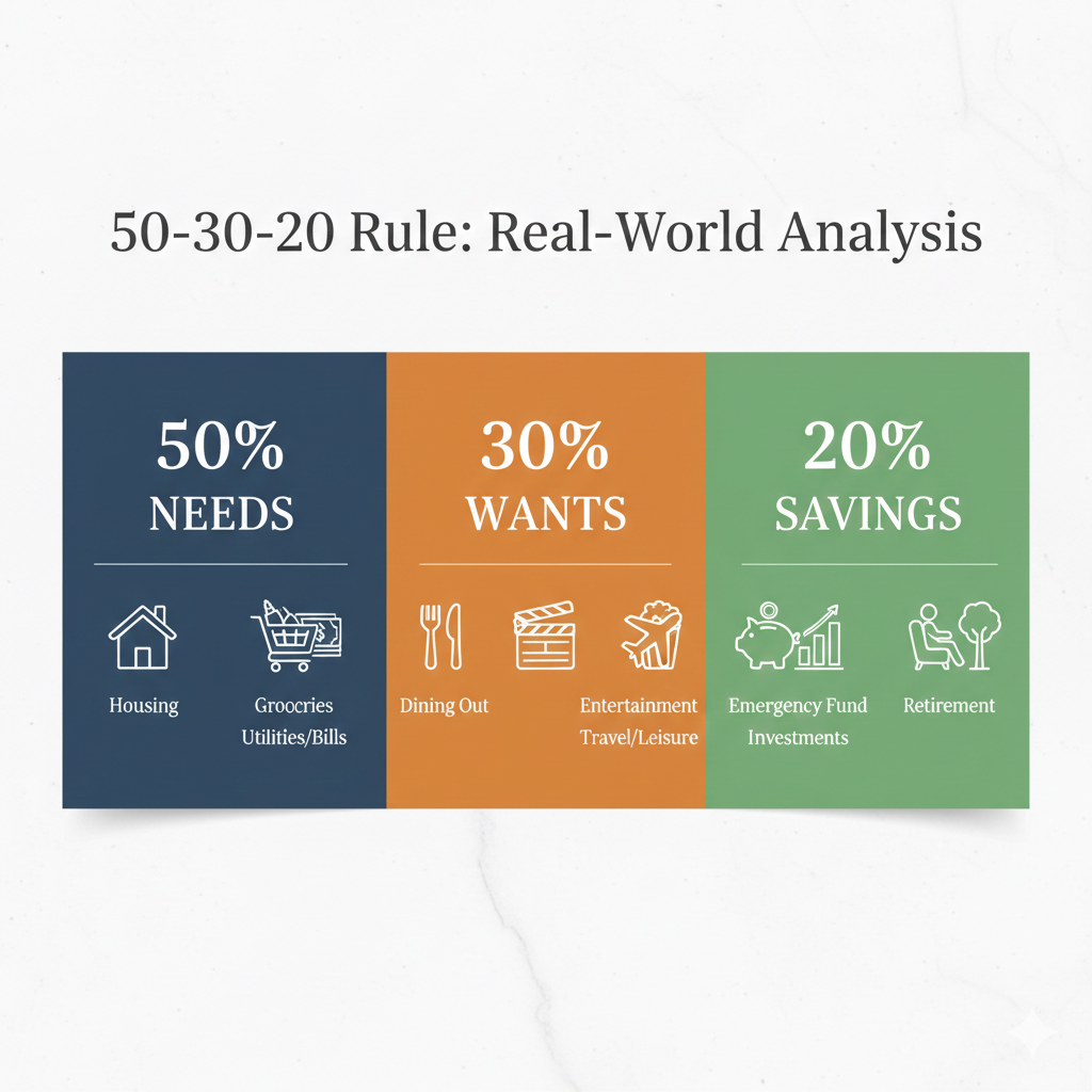 Critical Insight: The 50-30-20 rule works best as a starting point rather than a rigid prescription. Its true value is in establishing the mindset of intentional allocation, which can then be customized to individual circumstances.