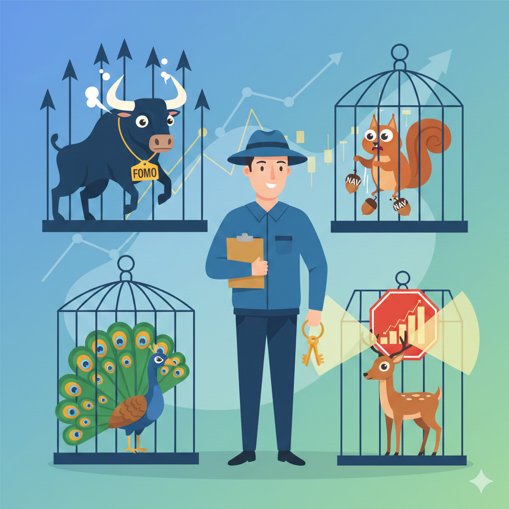 Successful mutual fund investing is less about predicting the market and more about managing the noisy, emotional zoo inside your own head. By recognizing these behavioral biases—the FOMO Bull, the Panic Squirrel, the Overconfident Peacock, the Paralyzed Deer, and the Rearview Driver—you can build cages of discipline around them.